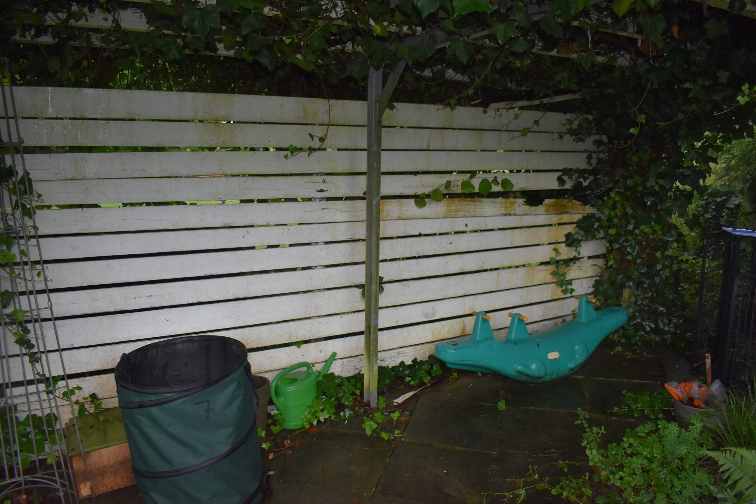 Der Kunde beauftragte uns mit der Verjüngung einer bestehenden Pergola. Hierbei wurde ein radikaler Rückschnitt des Efeus gemacht, es wurden neue Dachträger aus Aluminiumhohlprofilen eingesetzt sowie die bestehende Holzwand durch eine langlebige WPC- Wand mit einer Garantie von 15 Jahren ersetzt.